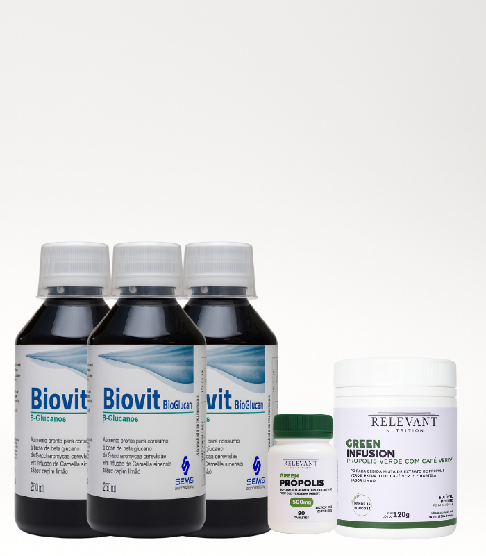 O Biovit Bioglucan trabalha a modulação imunológica e reduz infecções respiratórias recorrentes, enquanto o Green Própolis e o Green Infusion oferecem ação antioxidante e anti-inflamatória, além de auxiliar no equilíbrio natural da microbiota, com efeito protetor das mucosas (oral, nasal e intestinal), auxiliando na recuperação pós-infecção e na redução de inflamações nas vias aéreas, com um efeito expectorante, broncodilatador leve e antioxidante.
